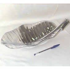 BANDEJA DECORATIVA, EM FORMATO DE FOLHA (39X17,5X6,5 CM). NO FUNDO DA BANDEJA, SELO 'A&C METAL DESIGN BRASIL', COM REFERÊNCIA DE Nº D31. ACONDICIONADA EM SACO PRETO DE TNT.