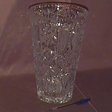 VASO FUNIL (17,5X28 CM) EM CRISTAL. COM DESENHOS GRAVADOS LEMBRANDO FLORES, E FUNDO DA BASE TRABALHADA EM MESMO MOTIVO. POSSUI SELO AZUL COLADO NO PRÓPRIO, COM A INSCRIÇÃO 'BOHEMIA CZECH REPUBLIC / HAND CUT LEAD CRYSTAL OVER 24% PBO'. ACOMPANHA FOLHETO INFORMATIVO SOBRE A PEÇA E PAPEL DE CONTROLE DE QUALIDADE. ACONDICIONADO EM CAIXA DE PAPELÃO AZUL COM LOGOTIPO EM INSCRIÇÃO DO FABRICANTE NAS LATERAIS (18,5X18,5X29 CM)