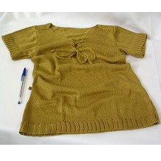 BLUSA DE LINHA (TAM G) NA COR AMARELO MOSTARDA. NA FRENTE UM CORDÃO COM DETALHE PLÁSTICO NA PONTA DE COR ROSA. ACOMPANHA UM CARTÃO DA ZUM ZUUM CONFECÇÃO EM LINHA.
