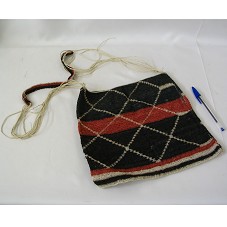BOLSA DE SISAL (27X27 CM), COM FORMAS GEOMÉTRICAS NAS CORES PRETA E VERMELHA. ALÇA DE CORDÕES DE SISAL.