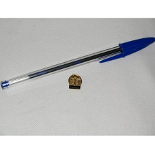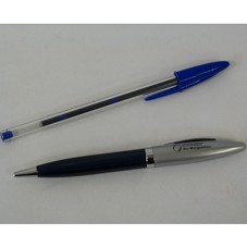 CANETA (14 CM) ROLLER, COM CORPO EM RESINA AZUL MARINHO E EM METAL PRATEADO FOSCO. POSSUI A GRAVAÇÃO 'INSTITUTO DE TECNOLOGIA EM IMUNOBIOLÓGICOS BIO-MANGUINHOS'. ACONDICIONADA EM ESTOJO (5,5X15,5X2 CM) DE METAL PRATEADO.