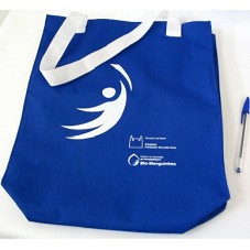 SACOLA (33X36,5X9,5 CM) EM LONA AZUL, COM ALÇA BRANCA, POSSUINDO UM BOLSO INTERNO. NA FRENTE, ESTAMPA EM BRANCO, DESENHO ESTILIZADO DE UMA PESSOA, E 'MINISTÉRIO DA SAÚDE / FIOCRUZ FUNDAÇÃO OSWALDO CRUZ / INSTITUTO DE TECNOLOGIA EM IMUNOBIOLÓGICOS BIO-MANGUINHOS'.