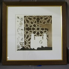 GRAVURA (41,7X41 CM) EM TONS DE MARROM. RETRATA O CONTORNO DA FACHADA DA FIOCRUZ, COM SÍMBOLO DA INSTITUIÇÃO BIO-MANGUINHOS NA FRENTE. AO FUNDO, UMA CADEIA MOLECULAR. NA LATERAL, PARTE DO CRISTO REDENTOR. NA PARTE INFERIOR, PERFIL DO CORCOVADO E DO CRISTO REDENTOR. NA LATERAL ESQUERDA, DESENHOS DE VACINAS, PLANTAS, TUBOS DE ENSAIO, ETC. NA PARTE INFERIOR DO QUADRO, '1/20 / FUNDAÇÃO OSWALDO CRUZ / BIO-MANGUINHOS / MARIA LÚCIA 2004'. MOLDURA EM MADEIRA (75,5X75 CM), COM DETALHE EM DOURADO; PASSE-PARTOUT BRANCO E TAMPO DE VIDRO.