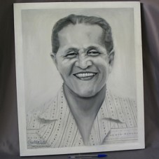 PINTURA EM TELA (50X60 CM), RETRATO DE DONA LINDU, MÃE DO PRESIDENTE LUIZ INÁCIO LULA DA SILVA, EM TONS DE CINZA. NO CANTO INFERIOR ESQUERDO, 'GETÚLIO DALTRO / FEIRA DE SANTANA / BAHIA'. ATRÁS DA TELA, 'GETÚLIO DALTRO / ARTE PLÁSTICO / ÓLEO; TELA PINTADA (EXCLUSIVO) / AO SENHOR PERSIDENTE LULA / SENHORA MÃE HEROÍNA DONA LINDU', COM TELEFONE DO AUTOR.