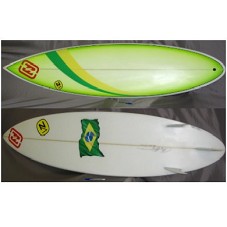 PRANCHA DE SURFE (190X150 CM), COM TRÊS ESTABILIZADORES NA PARTE POSTERIOR. PINTADA EM TONS DE VERDE, POSSUINDO A BANDEIRA DO BRASIL NA PARTE POSTERIOR E AUTÓGRAFO DO FABRICANTE.