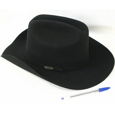 CHAPÉU EM FELTRO (TAM 59 MÉXICO / 7 3/8 USA), NA COR PRETA. NA COPA, UMA FITA TAMBÉM EM FELTRO, NA COR PRETA, COM UMA PLACA EM METAL COM A INSCRIÇÃO 'STEMSON'. O INTERIOR FORRADO COM NYLON E NAPA NA COR PRETA E O DESENHO DE UM HOMEM ANDANDO À CAVALO. POSSUI AS INSCRIÇÕES 'STEMSON / CAR LOP / ''SELF CONFORMING'' / 20 SILVER-LAN / CHARLY BY CAR-LOP / HAT COLLECTION / WOLL-FELT'. POSSUI TAMBÉM UM ADESIVO COM A INSCRIÇÃO ' CHAPÉUS BARRETOS / IMPORTS'.