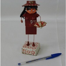 BONECA (8,5X18,5 CM), SENDO O CORPO FEITO COM CAIXA DE FÓSFOROS PINTADA DE VERMELHO, COM A INSCRIÇÃO 'PT'. CABELO EM LÃ PRETA, CHAPÉU VERMELHO COM DETALHES DOURADOS E BRANCOS E, EM UMA DAS MÃOS, UMA SOMBRINHA VERMELHA E BRANCA. FIXADA EM BASE BRANCA COM DESENHOS DE FLORES BRANCAS E VERMELHAS, TENDO NA PARTE POSTERIOR A INSCRIÇÃO 'VANESSA COSTA / 13 ANOS / TURMA DO FLAU / R.ESPARDARTE / BRASÍLIA TEIMOSA / RECIFE/PE'.