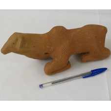 ESCULTURA EM BARRO (24X8X9 CM), FIGURA DE UM ANIMAL SENTADO SOBRE AS QUATRO PATAS. PARECE UMA OVELHA.