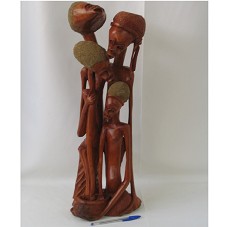 ESCULTURA (61 CM) EM MADEIRA, RETRATANDO O QUE PARECE SER UMA FAMÍLIA: PAI,MÃE E DOIS FILHOS, TODOS ABRAÇADOS. O FILHO MENOR, COM UM CESTO NA MÃO, PARECENDO ESTAR PEGANDO ALGO COM A OUTRA. NA PARTE POSTERIOR, A INSCRIÇÃO 'ALEGRIA 04'.
