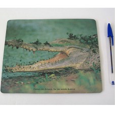MOUSE-PAD (21,5X18 CM) COM FOTOGRAFIA DE UM JACARÉ NA PARTE FRONTAL. POSSUI A INSCRIÇÃO 'CAIMÁN DEL ORINOCO, SUR DEL ESTADO GUÁRICO'.