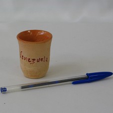 COPO DE PINGA OU LICOR EM CERÂMICA (4,5X5,5 CM), COM A INSCRIÇÃO 'VENEZUELA' EM VINHO.