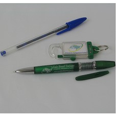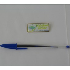 CANETA EM PLÁSTICO VERDE, COM DETALHES EM METAL PRATEADO. POSSUI A INSCRIÇÃO 'GUIA BRASIL TURISMO / O CAMINHO INTELIGENTE DO TURISMO / ....'. ACOMPANHA CHAVEIRO EM PLÁSTICO TRANSPARENTE E VERDE, COM MESMA INSCRIÇÃO.