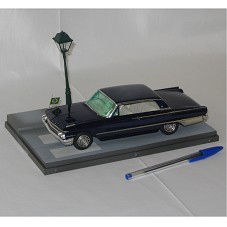 AUTOMODELO (20,5X7X6 CM) DE CARRO ANTIGO DA FORD, O GALAXIE, NA COR AZUL MARINHO, COM UMA BANDEIRA DO BRASIL NA PARTE FRONTAL DO CAPÔ (BANDEIRA ESTÁ SOLTA). ACOMPANHA BASE IMITANDO FRAÇÃO DE UMA ESQUINA DE RUA (24,5X15,5 CM) COM UM POSTE ANTIGO, NA COR VERDE, NA ESQUINA DA CALÇADA. POSSUI REDOMA EM ACRÍLICO COM A INSCRIÇÃO 'AUTOMODELS / PLASTIMODELISMO / WWW.AUTOMODELS.COM.BR'. O CARRO ESTÁ SOLTO DA BASE.