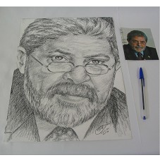 DESENHO (29X39 CM) EM CANSON, RETRATO DO PRESIDENTE LUIZ INÁCIO LULA DA SILVA, EM PRETO E BRANCO, USANDO ÓCULOS, FEITO COM GRAFITE E CRAYON. NO CANTO INFERIOR DIREITO, ASSINATURA DO ARTISTA 'ELI / S.G.C. - AM / OUT 2004'. ACOMPANHA RECORTE DE REVISTA, COM A FOTOGRAFIA DO PRESIDENTE, DE ONDE O DESENHO FOI COPIADO.