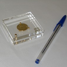 MEDALHA/MOEDA (2,2 CM) EM OURO. NA FRENTE, A INSCRIÇÃO 'CONFUCIUS' E DESENHO DE SEU BUSTO. ATRÁS, LOGOMARCA DA 'UNESCO' E '1995'. ENCAIXADA ENTRE DUAS PLACAS DE ACRÍLICO (6,5X6,5X1,7 CM), ENTRE PINOS DOURADOS. NA PLACA, 'UNESCO'. ACONDICIONADA EM CAIXA (12X12X3 CM) AZUL MARINHO.