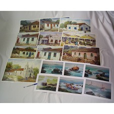 DEZ GRAVURAS EM PAPELÃO MEDINDO (47X32,5 CM) E SEIS GRAVURAS MEDINDO (31X21 CM),COM PINTURAS DIVERSAS SOBRE A HISTÓRIA DA CIDADE DE TORRES-RS, TODOS ASSINADOS POR 'ROSANEA MARTINS'. NA PARTE INFERIOR INFORMAÇÕES SOBRE A PINTURA.