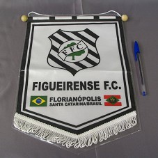 FLÂMULA DO FIGUEIRENSE FUTEBOL CLUBE, EM TECIDO BRANCO, COM BORDAS PRETAS E FRANJA BRANCA. HASTE EM MADEIRA. POSSUI O BRASÃO DO TIME E 'FIGUEIRENSE F.C. / FLORIANÓPOLIS SANTA CATARINA/BRASIL', E BANDEIRAS DO BRASIL E DE SANTA CATARINA. PROTEGIDA POR PLÁSTICO.