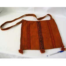 SACOLA/BOLSA (36X33 CM) EM TONS DE MARROM, LARANJA E VERMELHO, COM ALÇA COMPRIDA, CONFECCIONADA EM TEAR.