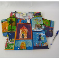 CAMISETA (TAM M) EM MALHA COLORIDA, COM ESTAMPA DE DIVERSOS DESENHOS INFANTIS, DE MANGA CURTA. ATRÁS, 'ERRADICAÇÃO DO TRABALHO INFANTIL E PROTEÇÃO DO ADOLESCENTE NO TRABALHO DOMÉSTICO / CIRCO DE TODO MUNDO - BELO HORIZONTE'.
