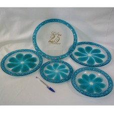 APARELHO DE JANTAR, COMPOSTO DE 52 PEÇAS, SENDO DOZE PRATOS GRANDES, DOZE PRATOS MÉDIOS, DOZE PRATOS PEQUENOS E QUATRO TRAVESSAS, TODOS COM AS BORDAS AZUIS E O DESENHO DE UMA FLOR EM SEU INTERIOR, TAMBÉM NA COR AZUL E DOZE SOUPPLATS COM AS BORDAS AZUIS E A INSCRIÇÃO EM DOURADO 'LULA/25/MARISA' EM SEU INTERIOR. ACOMPANHA CERTIFICADO DE GARANTIA, EM ITALIANO. ACONDICIONADOS EM UMA CAIXA DE MADEIRA (83X83X50 CM).