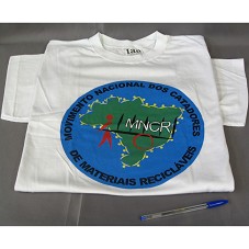 CAMISETA BRANCA (TAM GG) COM A MARCA DO MOVIMENTO NACIONAL DOS CATADORES DE MATERIAIS RECICLÁVEIS, NA FRENTE.