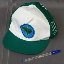 BONÉ VERDE E BRANCO COM A MARCA DO MOVIMENTO NACIONAL DOS CATADORES DE MATERIAIS RECICLÁVEIS NA FRENTE. NAS LATERAIS AS INSCRIÇÕES 'NA LUTA PELA: PRESERVAÇÃO DA NATUREZA / CONTRA A PRIVATIZAÇÃO DO LIXO.' 'NA LUTA PELO: RECONHECIMENTO, VALORIZAÇÃO E AUTO ORGANIZAÇÃO DOS CATADORES.'.