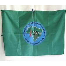 02 (DUAS) BANDEIRAS VERDES (68,5x96 CM), COM A MARCA DO 'MOVIMENTO NACIONAL DOS CATADORES DE MATERIAIS RECICLÁVEIS' NO CENTRO.