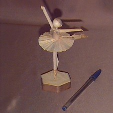 ESCULTURA (13,5 CM) EM PALHA. FIGURA DE UMA BAILARINA CLÁSSICA EM MOVIMENTO. FIXADA EM BASE SEXTAVADA (5X5X1,5 CM). ACONDICIONADA EM EMBALAGEM PRÓPRIA (13,3X17,7X8 CM), POSSUINDO NO VERSO DA TAMPA DESCRIÇÃO SOBRE O OBJETO 'BAILARINA EM PALHA DE MILHO' E CONTATOS DA ARTISTA. ACOMPANHA CARTÃO DE VISITA DA ARTISTA, TENDO NO VERSO, 'OFERTADO PELO DEPUTADO RENATO CASAGRANDE PARA DNA. MARISA / ANIVERSÁRIO.'.
