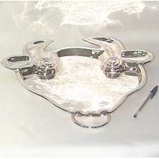 BANDEJA (39X42 CM) EM PRATA. FORMATO ESTILIZADO DA CARA DE UM BOI, COM ARGOLA NO NARIZ.