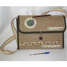 PASTA (35,5X7X26 CM) ARTESANAL, CONFECCIONADA EM: ESTOPA DE JUTA E ALGODÃO CRU, COM DETALHES EM PALHA DE BURITI, BOTÕES EM SEMENTE DE AÇAÍ E 'OLHO DE BOI', CORDA DE TUCUM E TINTA DE GENIPAPO. POSSUI UMA DIVISÃO INTERNA, ALÇA COMPRIDA E CURTA. NA FRENTE, ESTAMPA, 'EXPOAMAZÔNIA / II FEIRA INTERNACIONAL DA AMAZÔNIA' E LOGOMARCAS DAS INSTITUIÇÕES PATROCINADORAS.