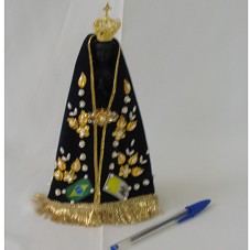 IMAGEM DE NOSSA SENHORA APARECIDA (23 CM) EM RESINA PRETA, COBERTA POR MANTO EM VELUDO AZUL, COM DETALHES EM DOURADO. POSSUI COROA DOURADA ENCAIXADA NA PARTE SUPERIOR DA CABEÇA.