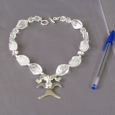 COLAR EM QUARTZO E PRATA 925. POSSUI PINGENTE EM PRATA 925, FORMATO DE UM DEUS ANTIGO, COM CABEÇA DE ÁGUIA, POSSUINDO DUAS COBRAS EM CIMA DA CABEÇA. ACOMPANHA CERTIFICADO DA PEÇA DE DESIGN Nº CLH721 E UMA FLANELA PARA LIMPEZA DA MESMA. ACONDICIONADO EM CAIXA DE MADEIRA (12X16X3,5 CM).