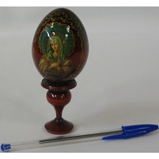PESSANKA (7,5 CM) , OVO EM MADEIRA DECORADO COM A IMAGEM DE UMA SANTA, COM SUPORTE TAMBÉM EM MADEIRA. ACOMPANHA BILHETE COM A INSCRIÇÃO ' DNA MARIZA / QUANDO ESTIVE EM SÃO PETERSBURGO/RÚSSIA, VI ESTA LEMBRANÇA E, DEPOIS DE SABER QUE AMESMA SIGNIFICA ''FORÇA'', ''CARINHO'' E ''AMOR'', ACREDITEI QUE TEM MUITO DA SENHORA. / QUE DEUS CONTINUE ILUMINANDO SEUS CAMINHOS E DA SUA FAMÍLIA. / UM FORTE E SINCERO ABRAÇO DESTE ''AMIGO DISCRETO'' / DEZ 2004'.