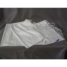MANTA (49X180 CM), NA COR BRANCA COM FRANJAS NAS PONTAS. ACOMPANHA CARTÃO COM A INSCRIÇÃO 'PRODUTO PANO DA COSTA / PRODUZIDO NO PROJETO DE CAPACITAÇÃO EM TECELAGEM / LOCAL: TERREIRO SÃO JORGE FILHO DA GOMÉIA / PORTÃO - LAURO DE FREITAS.