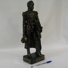 ESCULTURA (34,5X14X8 CM) EM CERÂMICA, FORMANDO FIGURA MASCULINA, DE SIMON BOLIVAR VESTIDO A CARÁTER, COM SEU CHAPÉU NA MÃO DIREITA E UMA LUNETA NA MÃO ESQUERDA, COM O SOBRETUDO EM SEU BRAÇO. EM TOM DE BRONZE ENVELHECIDO. FIXADA EM BASE (3,5X12X8 CM) DE MESMO MATERIAL, TENDO NA PARTE FRONTAL O BRASÃO DA VENEZUELA E A INSCRIÇÃO 'SIMÓN BOLIVAR / CAMPAÑA ADMIRABLE' E NAS LATERAIS 'ESCULTURAS BERMÚDEZ REGISTRADA' E A ASSINATURA DO AUTOR 'BERMÚDEZ B. NELSON'. ACOMPANHA CURRÍCULO DO MESMO. ACONDICIONADO EM CAIXA (16X43,5X22) FORRADA COM VELUDO VERMELHO COM A INSCRIÇÃO EM PLACA DOURADA 'HUGO CHAVES FRIAS / PRESIDENTE DE LA REPÚBLICA BOLIVARIANA DE VENEZUELA'.