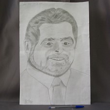 DESENHO (46X32 CM) EM GRAFITE DO PRESIDENTE LUIZ INÁCIO LULA DA SILVA. NO CANTO INFERIOR ESQUERDO, ASSINATURA 'ERIMILTON / 16/02/2004 / PINTURAS E ARTES'.