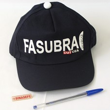 DOIS BONÉS PRETOS, IDÊNTICOS, COM A INSCRIÇÃO 'FASUBRA / CUT/CEA / SINDICAL' E UM BROCHE (1X4 CM) DA SINASEFE.