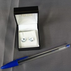UM PAR DE ÁGUA-MARINHA, VARIEDADE DE PEDRA SEMIPRECIOSA DE COR AZUL-CLARA. ACONDICIONADA EM EMBALAGEM PRÓPRIA NA COR PRETA (4,5X5X3 CM).