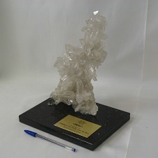 FRAGMENTO DE CRISTAL (13X7X26,5 CM), EM TONALIDADE BRANCA E TRANSPARENTE. FIXADO EM BASE DE MÁRMORE PRETO (23X17X2 CM) COM PLACA METÁLICA DOURADA, CONTENDO A INSCRIÇÃO 'WORLD ECONOMIC FORUM / COMMITTED TO IMPROVING THE STATE OF THE WORLD / IN HONOUR OF PRESIDENT LUIZ INACIO LULA DA SILVA / ANNUAL MEETING 2005'. NO FUNDO DA BASE, ETIQUETA 'ECHTER BERGKRISTALL / 12-20 MIO JAHRE ALT / MEMBRINI KRISTALL / UNTERE GASSE 26 - 7000 CHUR / WWW.MEMBRINI.CH'.