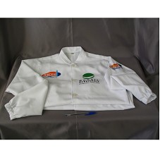 DOIS JALECOS (TAM M E GG) EM TECIDO BRANCO, DE MANGA COMPRIDA, COM DOIS BOLSOS FRONTAIS. NA FRENTE, 'BRASIL SORRIDENTE / A SAÚDE BUCAL LEVADA A SÉRIO' E LOGOMARCA; E, 'ASCES / ASSOCIAÇÃO CARUARUENSE DE ENSINO SUPERIOR / ...' E LOGOMARCA. NA MANGA ESQUERDA, MESMO SÍMBOLO BORDADO.