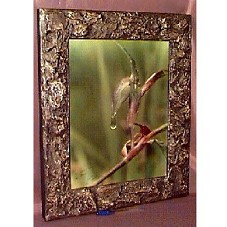 QUADRO (55X46CM) CONTENDO FOTOGRAFIA DE UMA GOTA DE ORVALHO, QUE PENDE DE UMA FOLHA, PREDOMINANDO A COR VERDE, E TRAZENDO A INSCRIÇÃO FEITA À MÃO 'NÓS SOMOS O PAÍS DA ESPERANÇA / JOÃO CAETANO / MARÇO/03'. MOLDURA EM MADEIRA ESCURA.