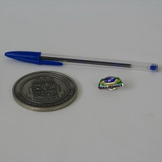 MEDALHA (6 CM) EM ESTANHO. NO ANVERSO, BRASÃO DA 'UNIVERSIDADE DE PASSO FUNDO - RS - BRASIL', TENDO NO PRIMEIRO QUADRANTE UMA CUIA DE CHIMARRÃO, NO SEGUNDO, UM RAMO DE AVEIA; NO TERCEIRO, UMA PRENSA DE GUTENBERG; E, NO ÚLTIMO, UM LEÃO. BASE ARREDONDADA, COM TRÊS ARCHOTES NA PARTE SUPERIOR. NAS LATERAIS, RAMOS DE LOURO; E, NA BASE, EM LATIM, UM LISTEL COM A INSCRIÇÃO 'COGNOSCERE'. NO VERSO, 'UPF / GRANDES CONQUISTAS PASSAM POR AQUI'. ACOMPANHA UM BÓTON COM SÍMBOLO DO PROGRAMA FOME ZERO E 'NULL HUNGER'; E FOLHETO COM A DESCRIÇÃO HERÁLDICA E SIMBOLOGIA DA MEDALHA. ACONDICIONADOS EM ESTOJO VERMELHO (9X9X4,5 CM)