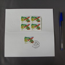 SELO POSTAL (40X30 MM), EM EMISSÃO ESPECIAL, EM COMEMORAÇÃO AOS 125 ANOS DA IMIGRAÇÃO LIBANESA PARA O BRASIL. SUA IMAGEM É COMPOSTA PELAS BANDEIRAS DO BRASIL E DO LÍBANO ENTRELAÇADAS PELO MOVIMENTO DO VENTO, AO FUNDO, SIMBOLIZANDO A UNIÃO ENTRE OS POVOS DOS DOIS PAÍSES. EM PRIMEIRO PLANO, O CEDRO, ÁRVORE SÍMBOLO DO LÍBANO; E, O IPÊ, REPRESENTATIVO DA FLORA BRASILEIRA, ASSINALANDO O RICO PATRIMÔNIO NATURAL DOS DOIS PAÍSES. ACOMPANHA 'EDITAL 4 - 2005', COM DESCRIÇÃO DO SELO E INFORMAÇÕES TÉCNICAS; QUATRO SELOS; E PAPEL CARTÃO COM CARIMBO E SELO. ACONDICIONADO EM PASTA DE COURO PRETO, COM MARCA DO 'CORREIOS' NA FRENTE.