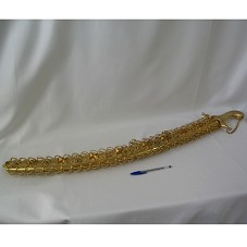 ESPADA (95,5 CM) COM LÂMINA CURVA PRATEADA, COM INSCRIÇÕES EM ÁRABE EM UMA DAS FACES, E PUNHAL EM METAL TRABALHADO, PINTADO DE DOURADO. BAINHA EM METAL COM MESMO ACABAMENTO DO PUNHAL, E MOTIVOS EM ALTO RELEVO, COM DESENHOS DE FLORES E OUTROS, CONFECCIONADA EM DUAS PARTES. ACONDICIONADA EM ESTOJO (105X21X7,5 CM) FORRADO DE VELUDO VERDE.