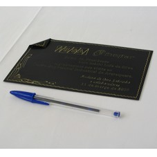 PLACA (19X12 CM) EM METAL PRETO, COM UMA DAS PONTAS DOBRADAS E BORDA EM DOURADO. POSSUI INSCRIÇÃO EM DOURADO, 'IESA / INEPAR / EXMO. SR. PRESIDENTE / LUIZ INÁCIO LULA DA SILVA / AGRADECEMOS SUA VISITA AO CENTRO EMPRESARIAL INDUSTRIAL DE ARARAQUARA. / ATILANO DE OMS SOBRINHO E COLABORADORES / 31 DE MARÇO DE 2005'. ACONDICIONADA EM ESTOJO (24X18X3 CM) FORRADO DE TECIDO MARROM CLARO.