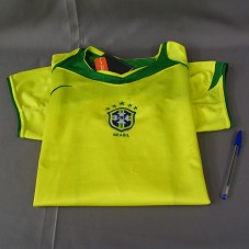 CAMISA DE FUTEBOL (TAM G) DO BRASIL, DRI-FIT, DE MANGA CURTA. NA FRENTE, O BRASÃO DA 'CBF' BORDADO. CAMISA SEM NUMERAÇÃO.