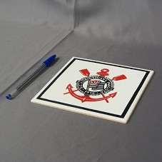AZULEJO (15,5X15,5 CM) BRANCO, COM EMBLEMA DO 'SPORT CLUBE CORINTHIANS PAULISTA' PINTADO NO CENTRO.