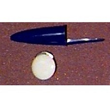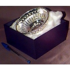 CESTA (40X115MM) EM PRATA, TRAZENDO EM SEU INTERIOR A GRAVAÇÃO DE UMA COROA. ACONDICIONADA EM ESTOJO AZUL.