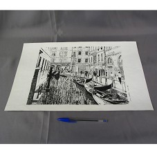 DESENHO (33,5X28 CM) A NANQUIM, SOBRE CANSON CREME. RETRATA RIO DE VENEZA, COM GÔNDOLAS À MARGEM DA CALÇADA E EDIFICAÇÕES. NO LATERAL INFERIOR DIREITA, 'ENZO NATELLA / 20 VIII 95'. ACONDICIONADO EM PASTA PLÁSTICA.