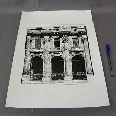 DESENHO (25,5X305 CM) A NANQUIM, SOBRE CANSON CREME. RETRATA FACHADA DE UM EDIFÍCIO, COM TRÊS ANDARES, MOSTRANDO AS TRÊS ORDENS RENASCENTISTAS. O ANDAR SUPERIOR ESTÁ PELA METADE. NO CANTO INFERIOR DIREITO, 'Mº ENZO NATELLA / 26 VIII 98'. ACONDICIONADO EM PASTA PLÁSTICA.